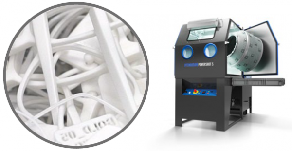 然后使用DyeMansion的Powershot S設備進行表面處理,因為SLS工藝尼龍打印的特性,打印件表面會稍顯粗糙。經(jīng)過表面處理后,打印件表面會比較光滑且具有磨砂效果。
