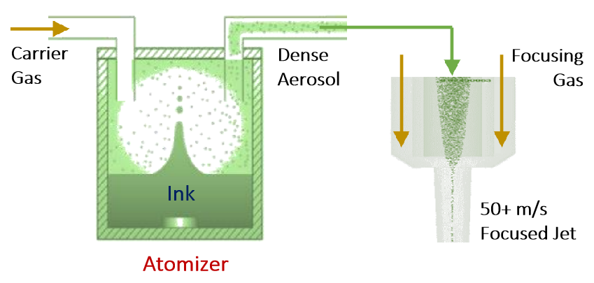 Optomec 是Aerosol Jet 氣溶膠噴射技術(shù)的擁有者。氣溶膠噴射系統(tǒng)使用新的技術(shù), 能夠在大容量和多種使用模式下打印微米級(jí)電子產(chǎn)品,包括在2D或3D表面上打印電路或組件。