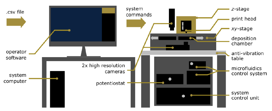 CERES系統(tǒng)示意圖,操作人員可直觀的進(jìn)行軟件控制,打印部分位于防震臺上,控制器硬件位于防震臺下方。
