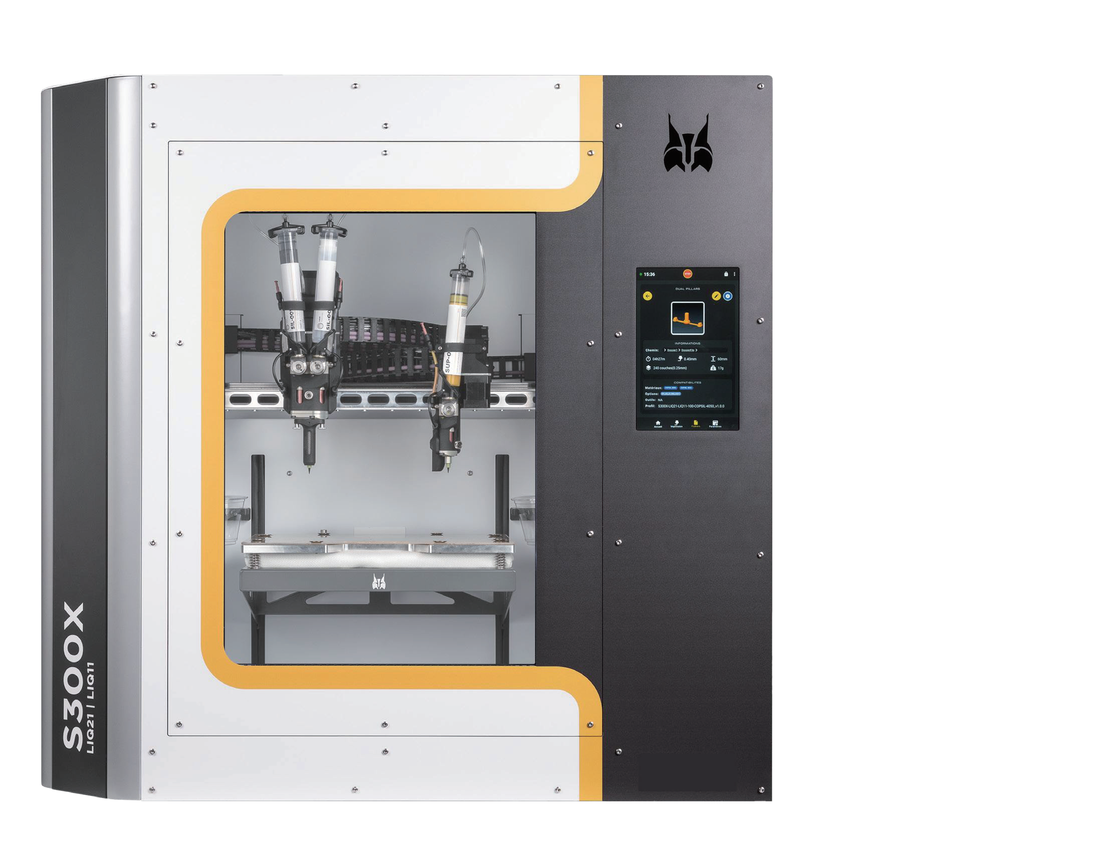 S300X-LIQ21|LIQ11 在緊湊的尺寸中結(jié)合了堅固性、精度和工業(yè)效率,適合任何工作空間。大容量墨盒允許在自主的情況下對大部件或幾個小部件進行硅膠打印,從而減少了干預(yù)的需要。其封閉、鎖定和過濾室可確保用戶的安全和舒適。