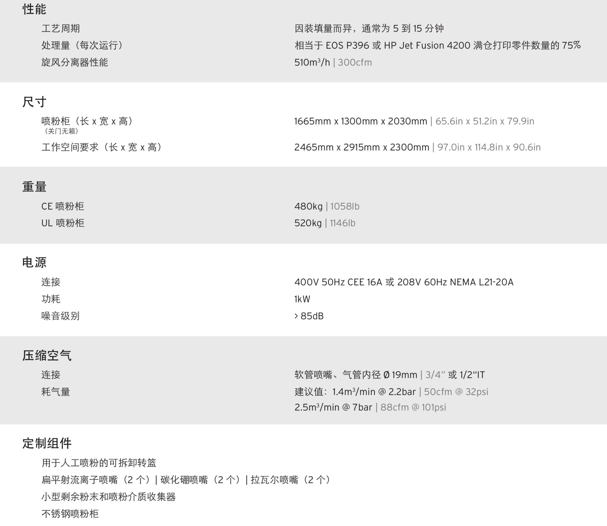 Powershot C 可自動清除多數零件上的多余粉末,同時也支持對大型或復雜零件進行人工噴粉, 提高了使用的靈活性。