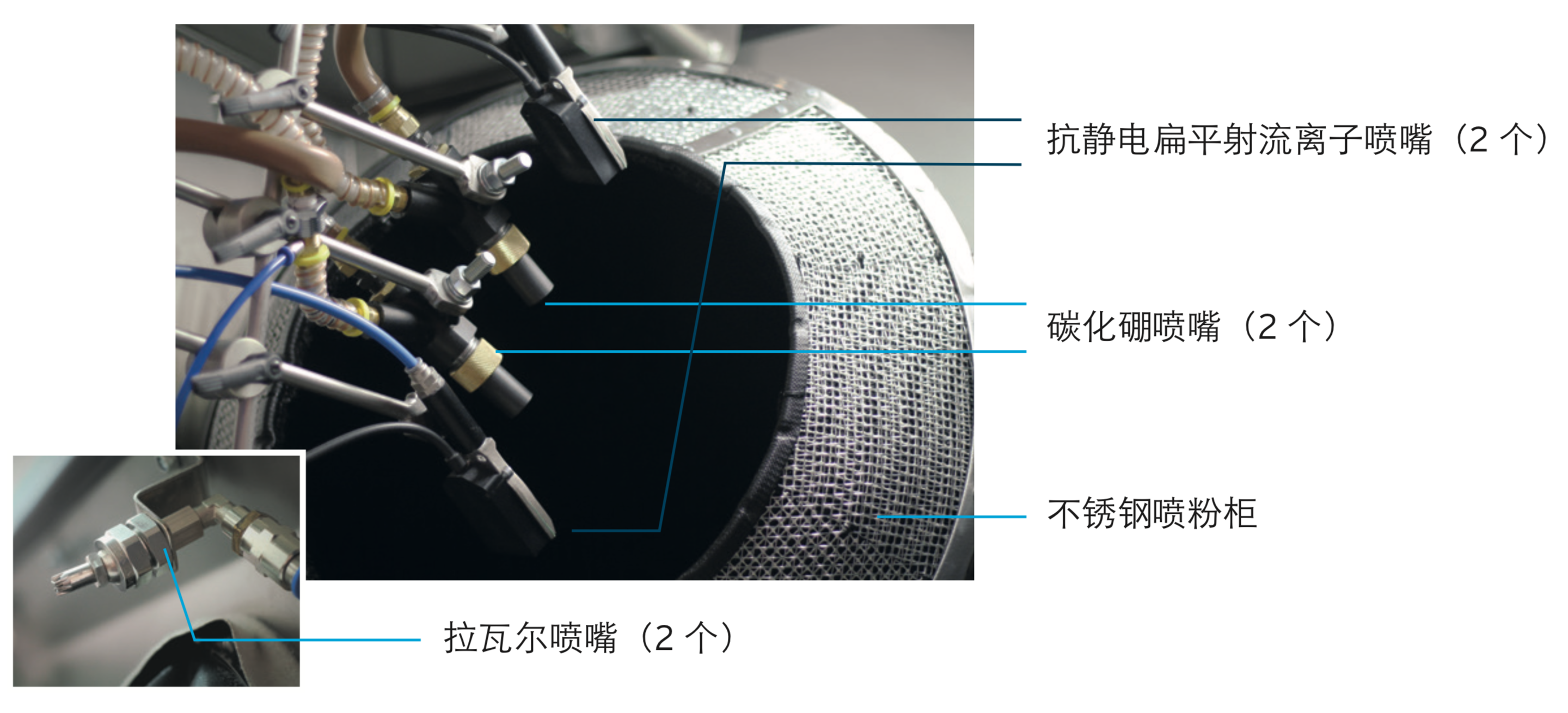 集成的電離噴嘴可徹底清潔零件上的粉末,同時,定制的旋風分離器可將粉末與玻璃砂徹底分離,作業(yè)倉也可在每次運行后自動清潔。